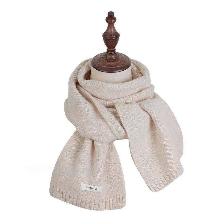 100%纯羊毛红色围巾女冬季高级感保暖纯色百搭针织圣诞礼物围脖男