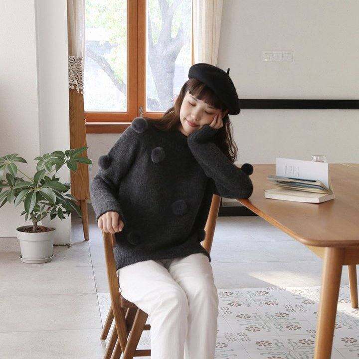 推荐这个毛衣!又软又舒服。上面的毛球也非常软糯,而且不掉毛。30+穿着也不幼稚,很喜欢~这家店是在上大学就一直在买的店,品质很不错,是十年前很流行的那种打板自质店,但店主找的款还蛮好看的,最早是做日本梨花款的,现在是小心机的法式风,推荐~