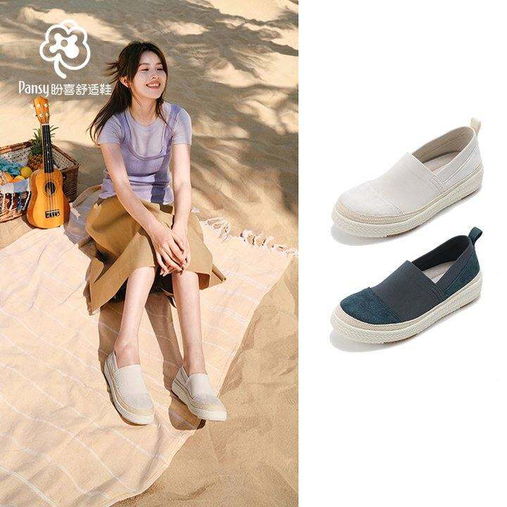Pansy盼喜日本女鞋一脚蹬透气舒适防滑飞织渔夫鞋2025年夏季新款