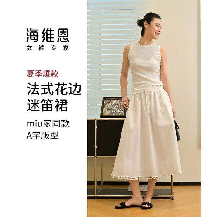 海家 2025夏季法式花边半身裙 浪漫蕾丝白色A字裙3506