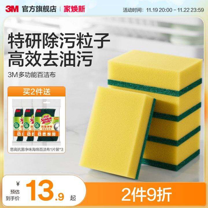3M思高百洁布海绵厨房专用加厚强力清洁刷锅双面丝瓜络洗碗布 CBG