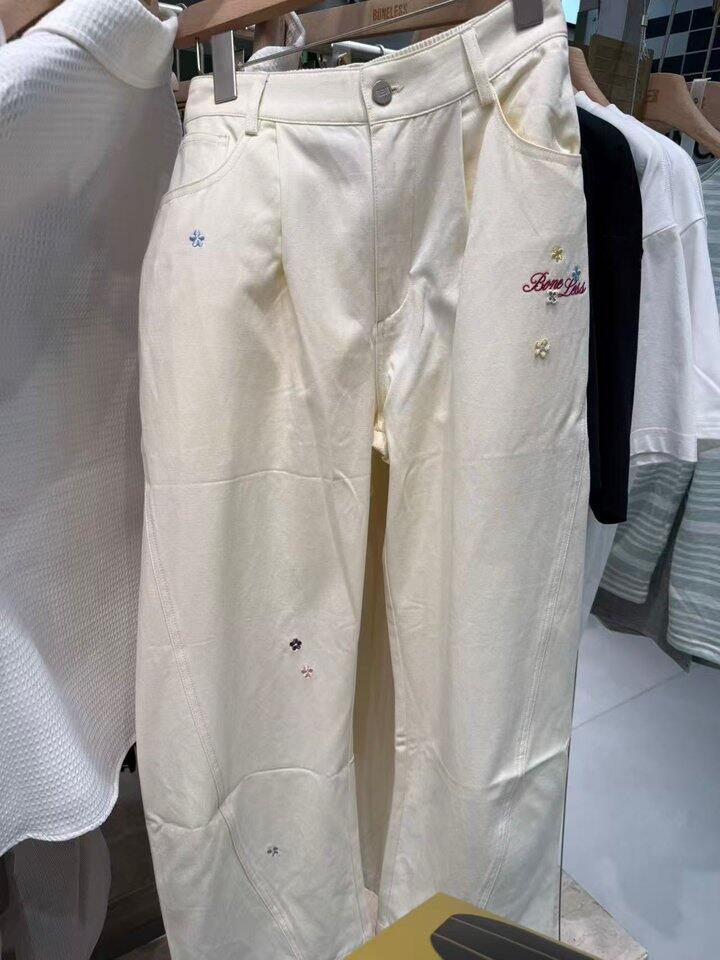 【商场同款】BONELESS莱赛尔小花立体刺绣亲肤透气抗皱休闲长裤
