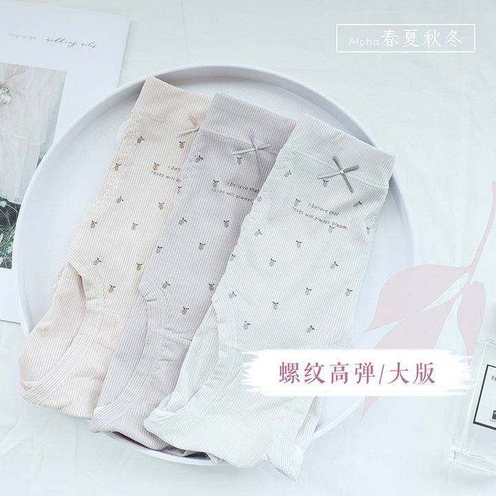 灰色の花丨高弹的螺纹针织,肉肉友好。简约秋冬舒适大版内裤女