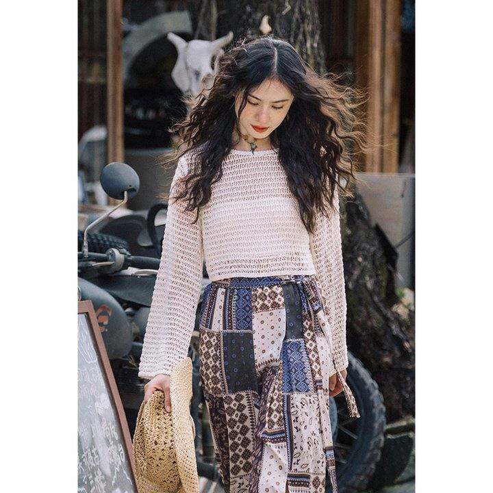 【葛姐同款罩衫】梦的马夏季波西米亚镂空罩衫针织薄款长袖度假风防晒宽松慵懒上衣