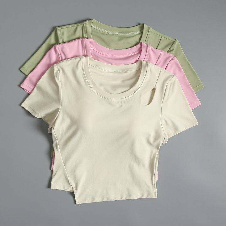 瑜伽短袖上衣女夏季性感紧身速干健身训练服带胸垫跑步运动T恤