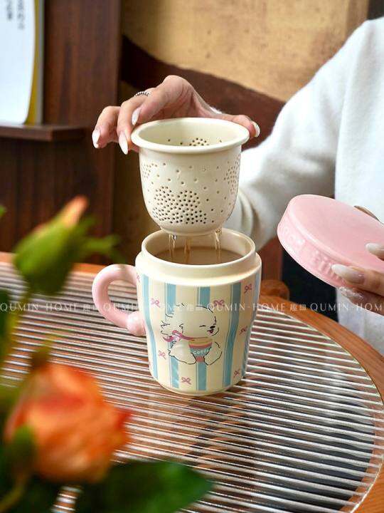 趣皿ins风可爱小狗马克杯卡通陶瓷杯茶水分离杯带盖茶漏杯水杯子