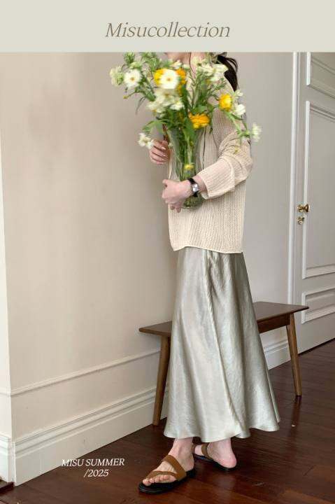 夏日柔光 醋酸皱感半身裙 微光泽缎面肌理感
