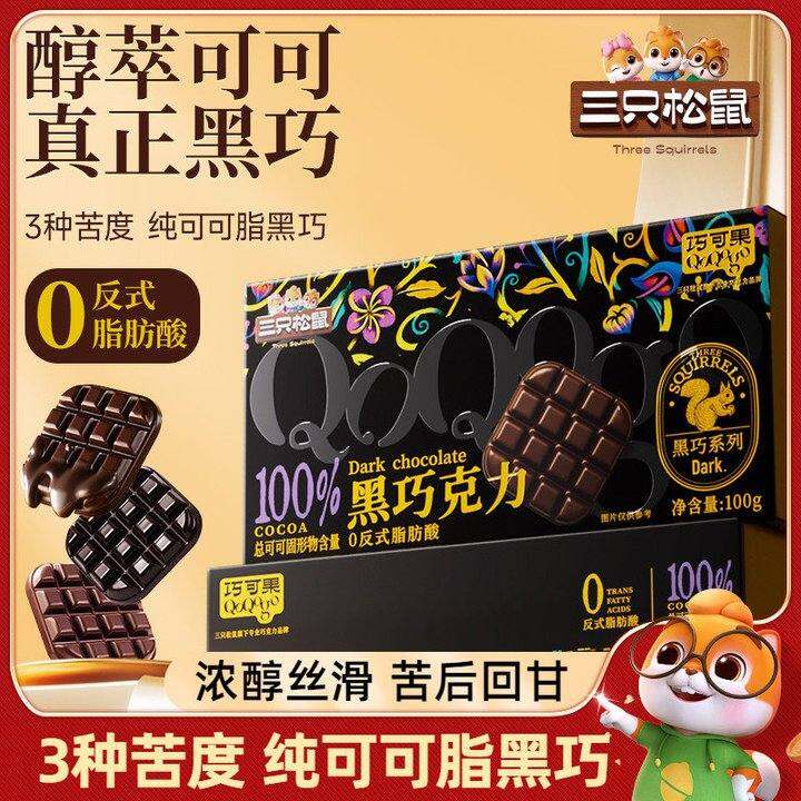 纯可可脂【三祇松鼠_黑巧克力100g】健身燃脂每日黑巧烘焙零食
