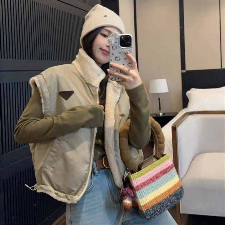 短款马甲女秋冬2024新款休闲宽松百搭立领羊羔毛两面穿背心外套潮