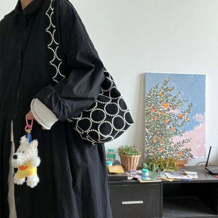 日系小hobo皆川明风铃鼓花棉麻重工刺绣单肩包手提包迷你腋下包