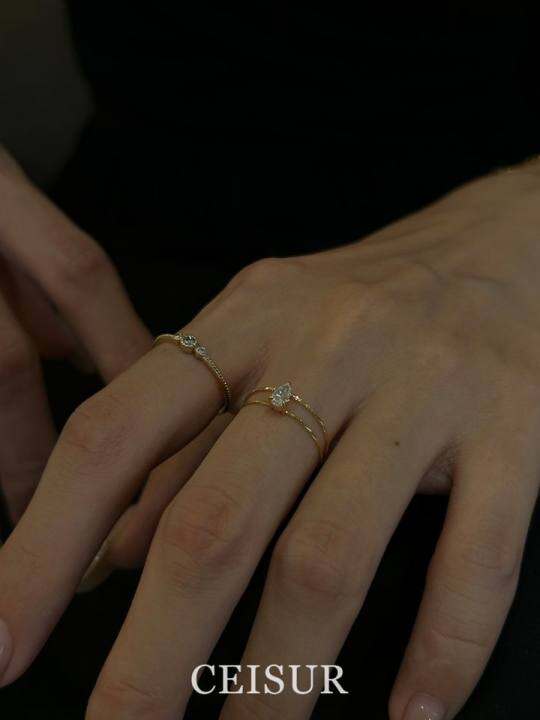 长期主义~极简线条水滴戒指精致感灵双层闪钻指环叠戴轻奢百搭女