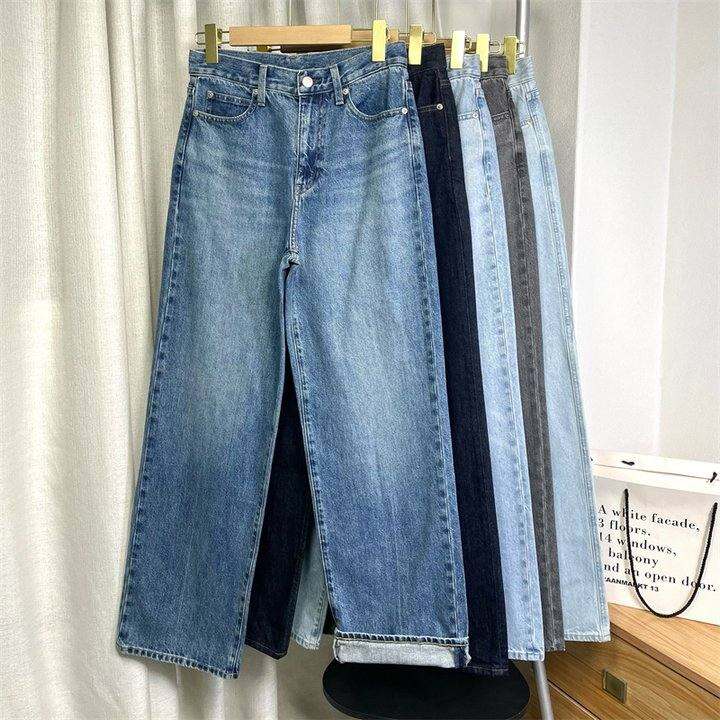 日系~复古显腿直腿长阔腿感!试衣间剪标水洗产品宽松直筒牛仔裤