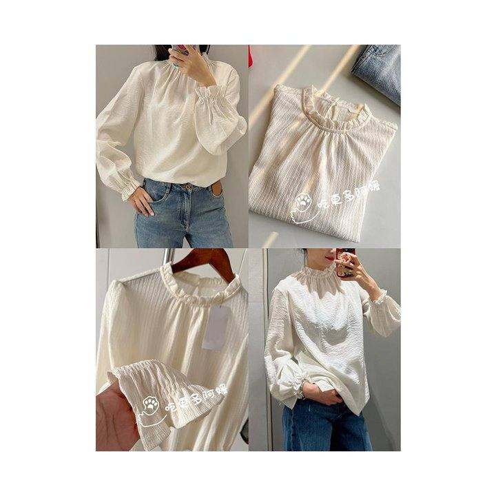 荐!期待春日!北欧小众C0*花边领衬衫 褶皱复古衬衣设计感高级
