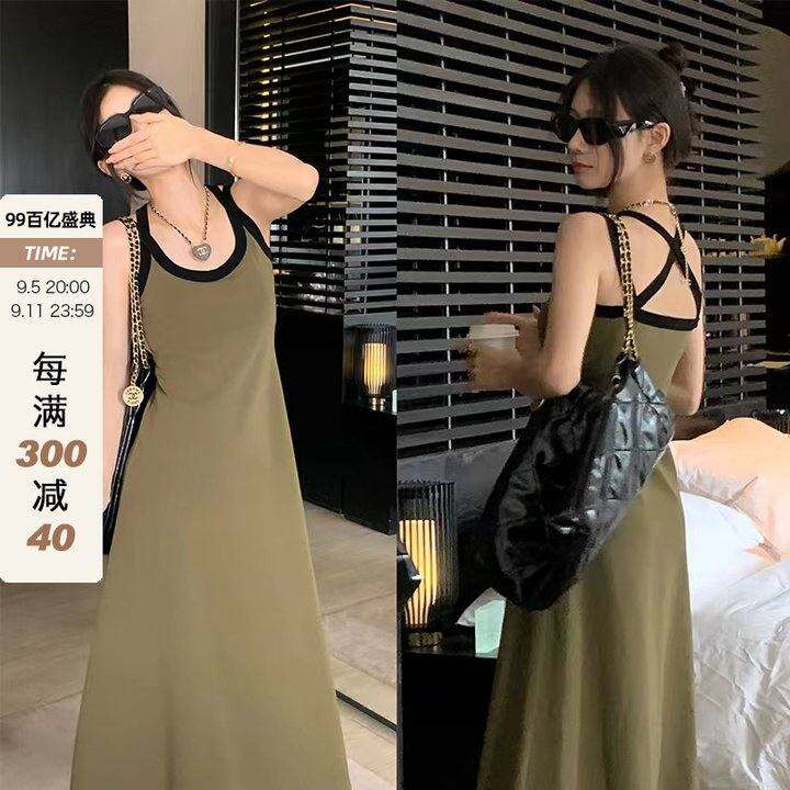 EKOOL定制【垂感纸片人】 带胸垫吊带裙长款女夏无袖背心连衣裙子