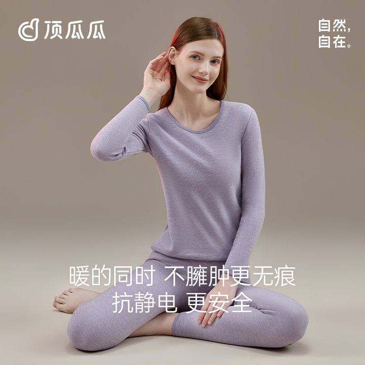 顶瓜瓜加绒加厚保暖内衣女士情侣秋冬打底衫上衣男士秋衣秋裤套装