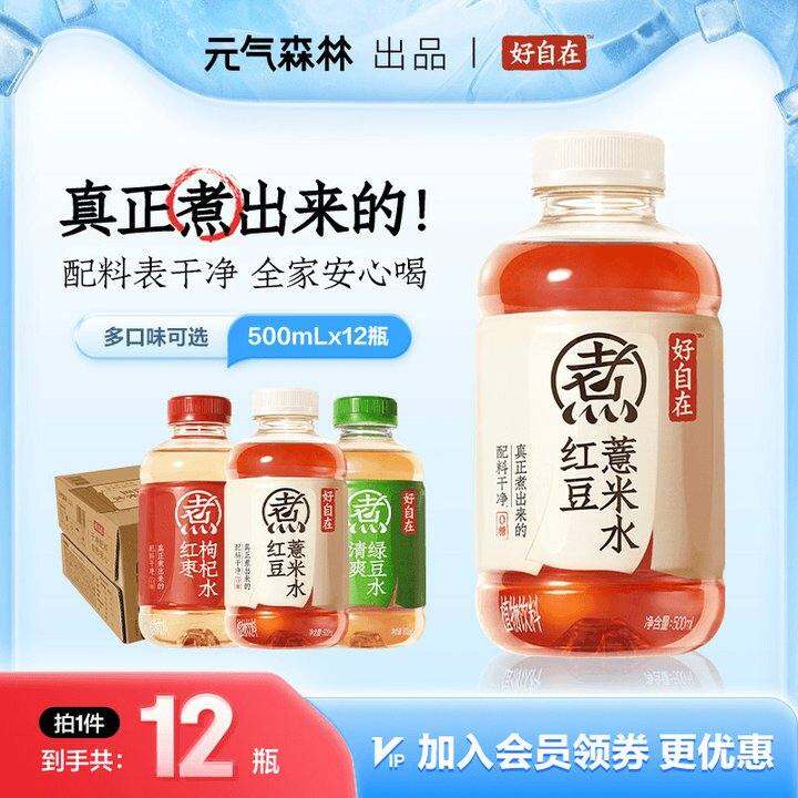 元气森林好自在元气自在水红豆薏米水无糖植物饮料500mL整箱