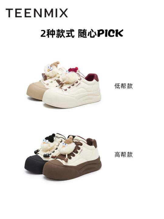 天美意厚底增高丑萌面包小白鞋女鞋子加绒休闲运动板鞋冬新款