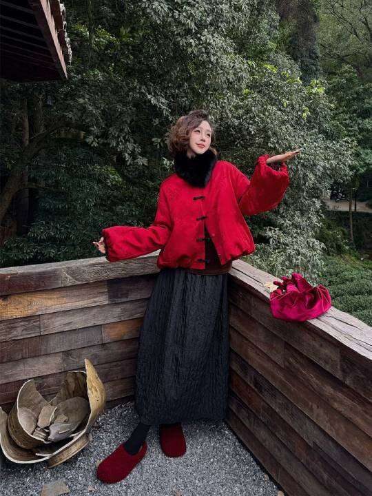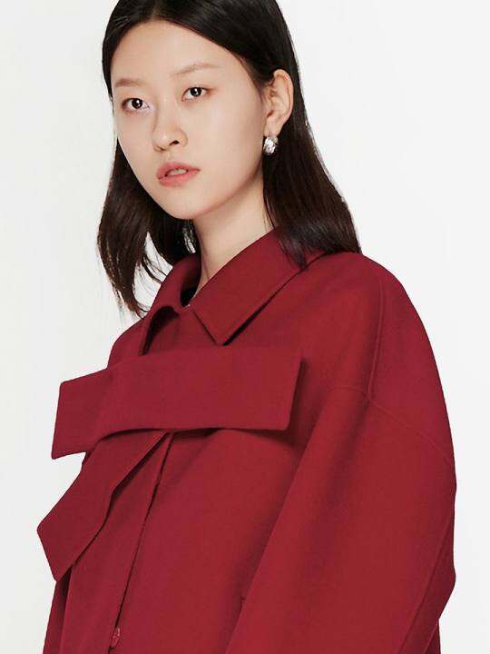 【清仓直降】飘蕾红色100%绵羊毛毛呢外套冬季保暖舒适喜庆减龄女