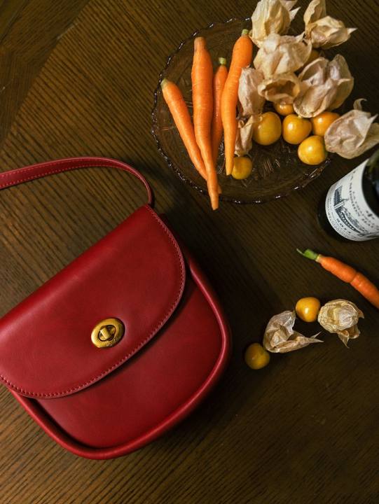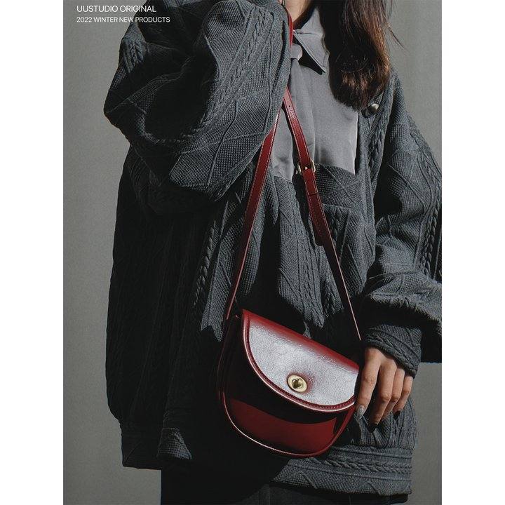 uustudio小众设计覆古AGB辣妹油蜡皮半圆锁扣邮差马鞍单肩斜挎包