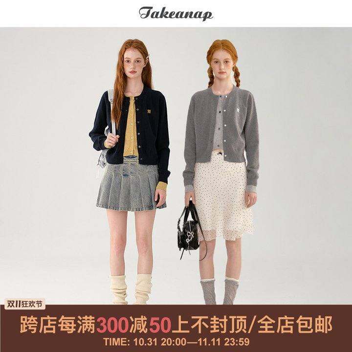 TAKEANAP午睡 撞色假两件针织开衫女秋新款学院风慵懒风毛衣外套