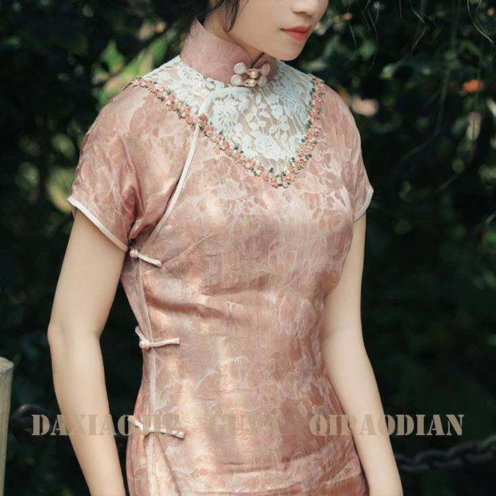 大小姐古法旗袍2024新春夏优雅淑女范粉色真开襟年轻设计款可日常
