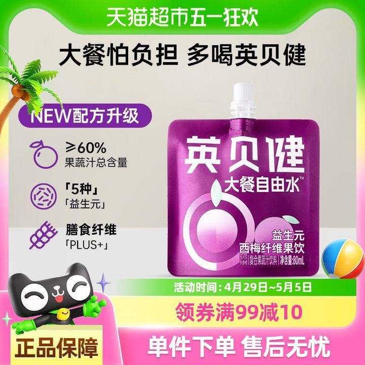 英贝健西梅汁益生元西梅纤维果饮80ml*1袋便携装果蔬汁饮料