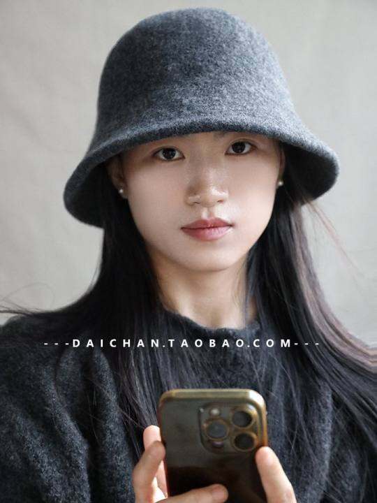 u系 日系极简高货绵羊毛纯色百搭渔夫帽 保暖盆帽 大脸显脸小冬女