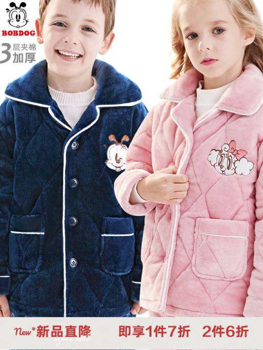 Babudou儿童睡衣冬季加厚男孩家庭服装套装女孩法兰绒婴儿珊瑚天鹅绒男孩