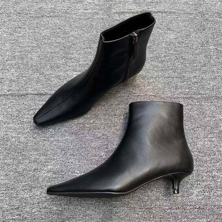 跨境原单秋冬爆款时尚百搭侧拉炼短靴外穿尖头细跟舒适时装靴女