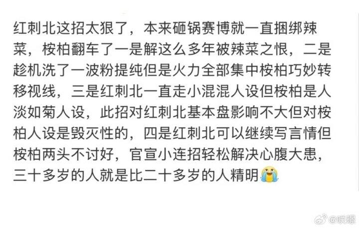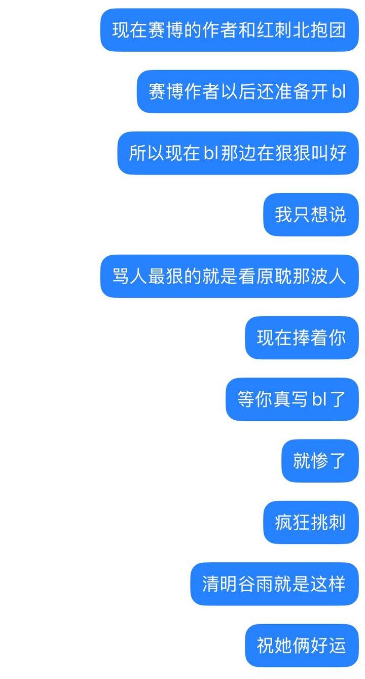 之前不是有人说赛博是她大学的时候写的嘛,我现在深信不疑,00后一毕业就入账千万根本没上过几天班,所以又飘又蠢,蠢到被人当枪使,现在核心受众全部跑光,到时候影视化估计还要被人追着举报,有得受了