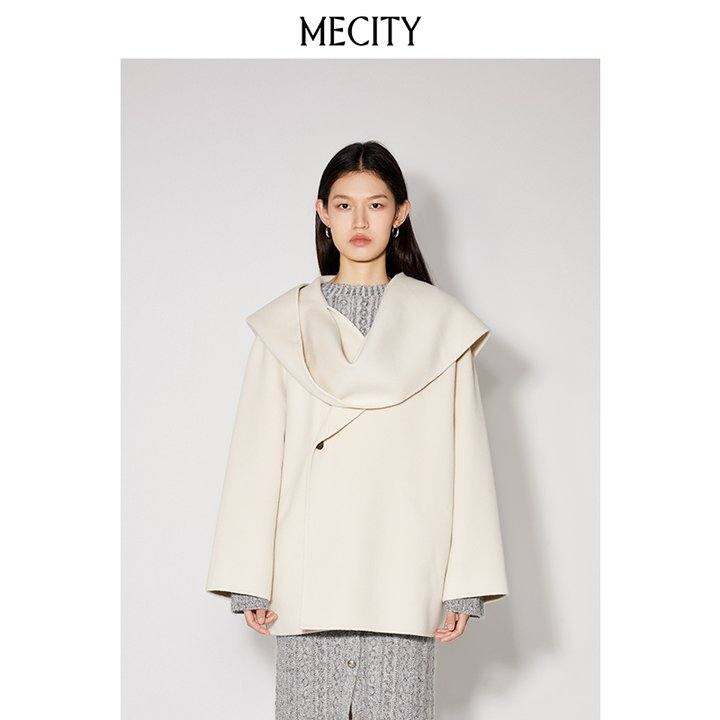 MECITY女装羊毛披肩两穿休闲双面呢大衣女秋冬气质商务外套533682