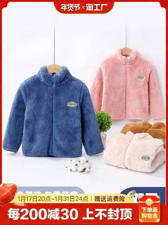 童装加绒保暖外套儿童秋冬款双面绒开衫女童男中大童加厚冬装上衣