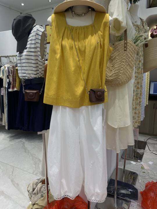 【非购买链接,仅做款式推荐】昨天逛街看到的,挂着一般上身试穿直接买走。上衣腋下有做防走光,棉质面料很舒服,而且不会显胖。裤子是蓬蓬的灯笼裤版型,看习惯了也还好。总体属于比较休闲的类型,出去玩穿也适合。