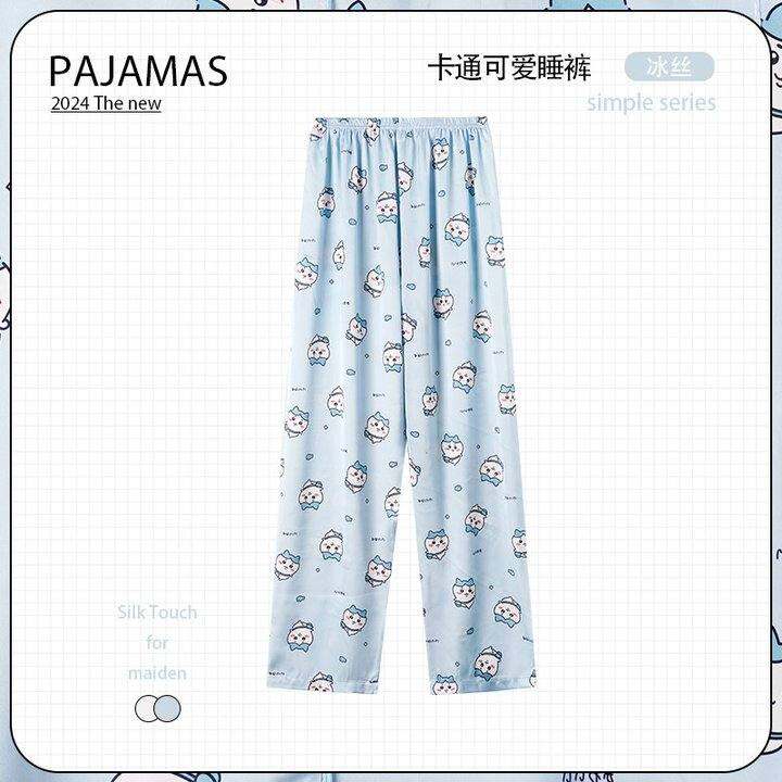 冰丝空调睡裤女长裤男春秋夏季薄款大码宽松休闲卡通遛弯裤家居裤