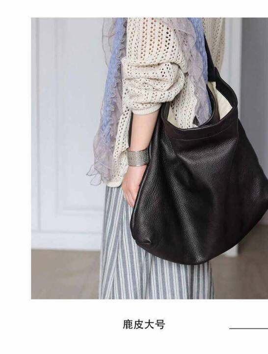 真鹿皮耐用牛皮倪妮包慵懒松弛帅又拽 设计感真皮单肩包托特包