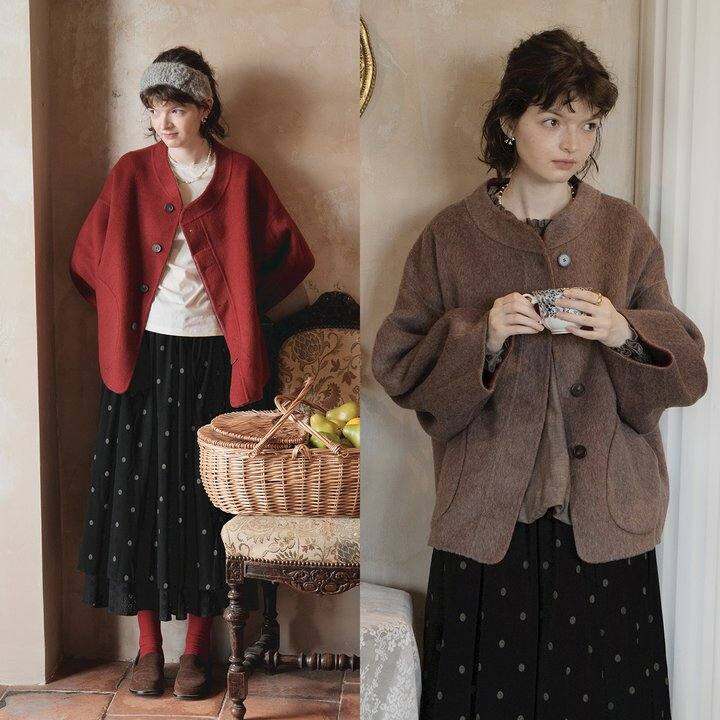 MintCheese 本季王炸外套 绝美棕红 正反两穿全羊毛双面尼短外套