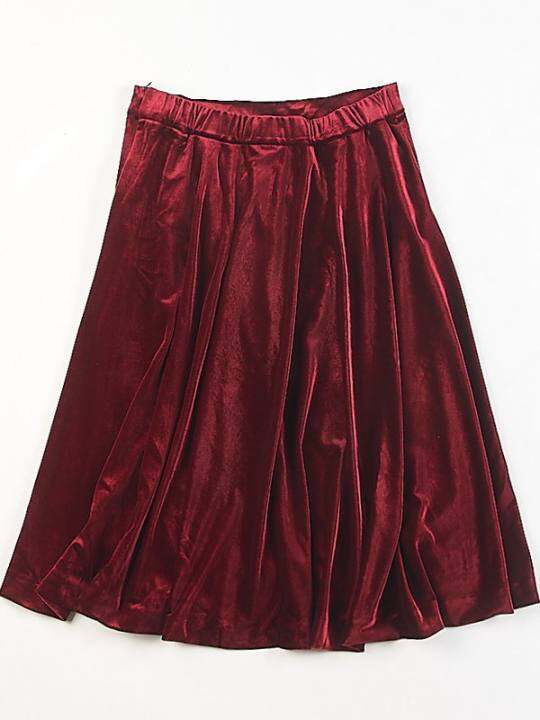 日单法式覆古金丝绒半身裙女84357秋季重垂感松紧高腰显瘦A字中裙