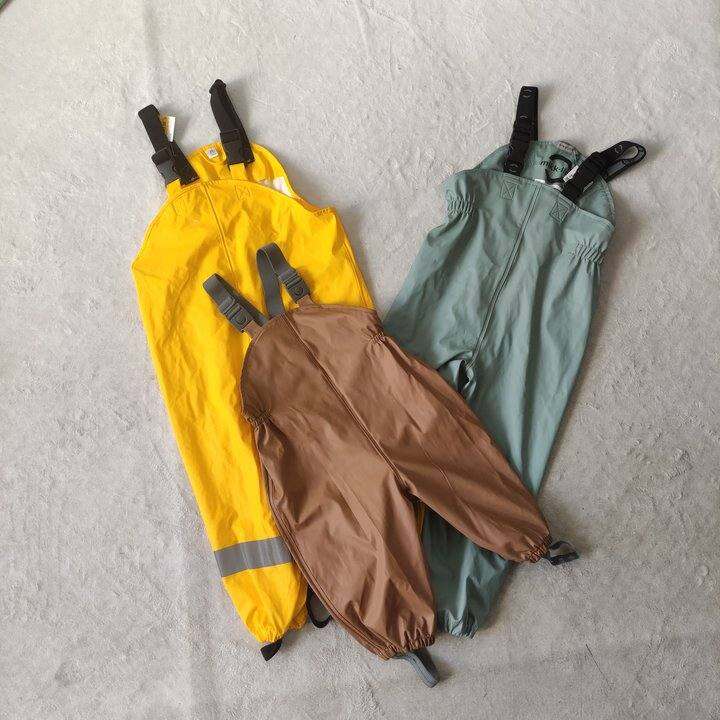 儿童背带雨裤外贸原单男女童户外防风防水环保PU春夏雨季雨裤瑕疵