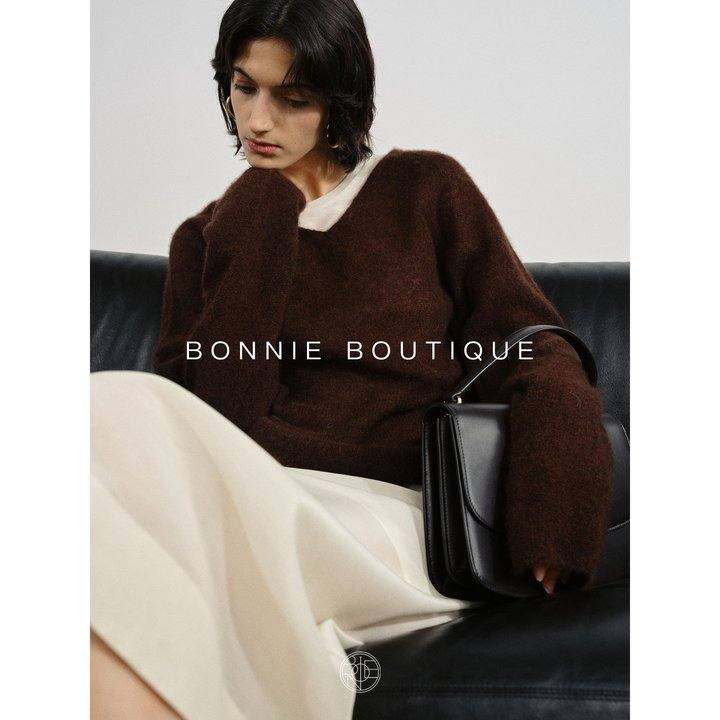 芭尼BONNIEBoutique|高端TopLine山羊绒真丝云朵无缝V领针织衫