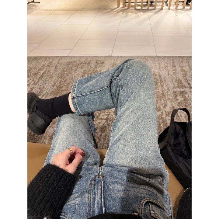 elielim 神裤级别!舒密绒浅色复古九分牛仔裤女新款直筒显瘦长裤