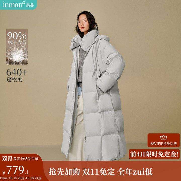 同价双11|茵曼抽绳连帽羽绒服女2025冬季宽松加厚保暖长款外套