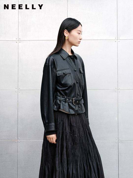 NEELLY纳俪商场同款秋冬新款气质简约皮衣外套女高级感通勤上衣