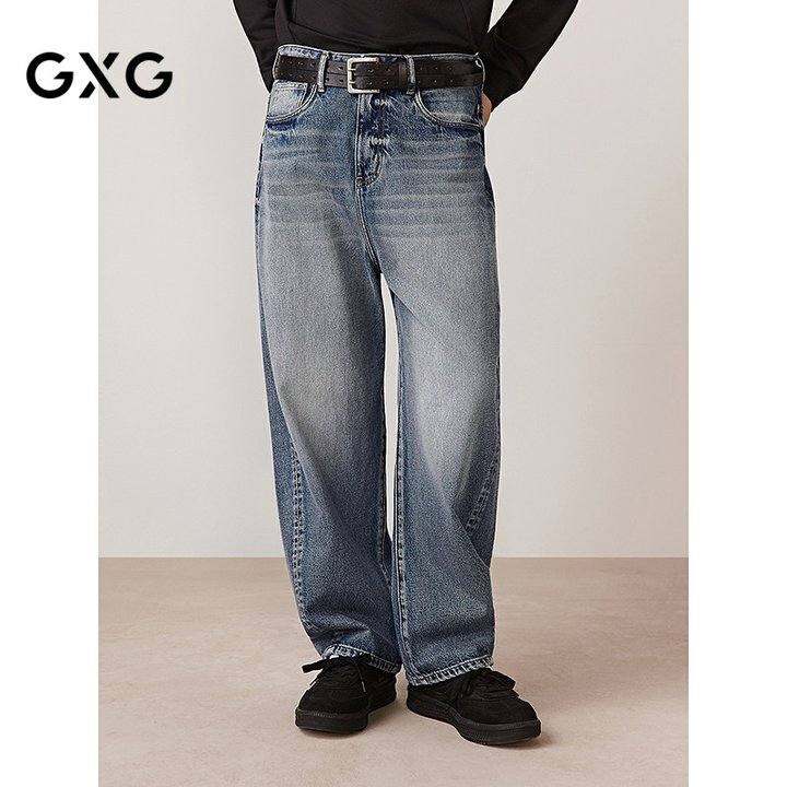 GXG男装 商场同款蓝色宽松长裤通勤牛仔裤男裤 25年春G25X051020