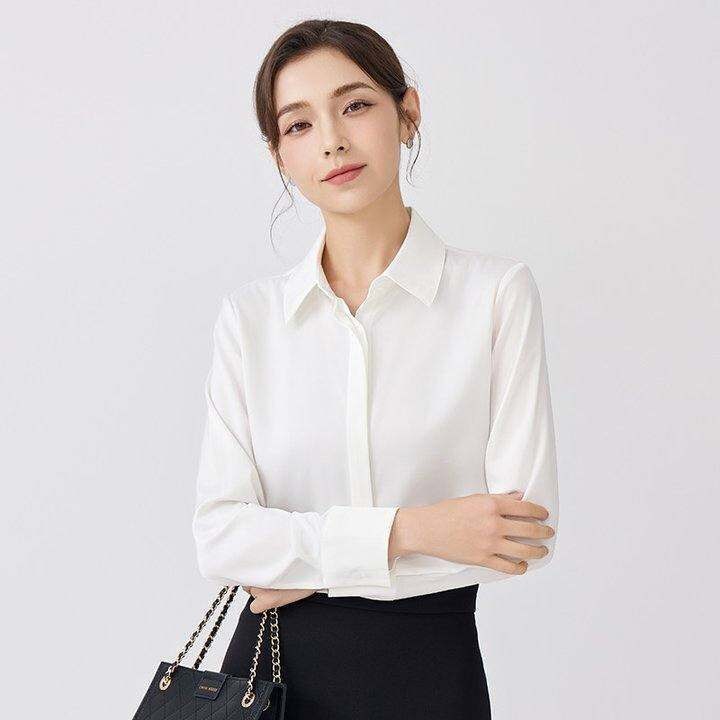 曼斯MANMISS暗门襟长袖衬衫女职业上班通勤公务员抗皱面试衬衣
