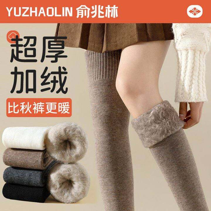羊绒过膝袜子女秋冬款长筒袜加绒加厚保暖高筒毛绒护膝冬季大腿袜