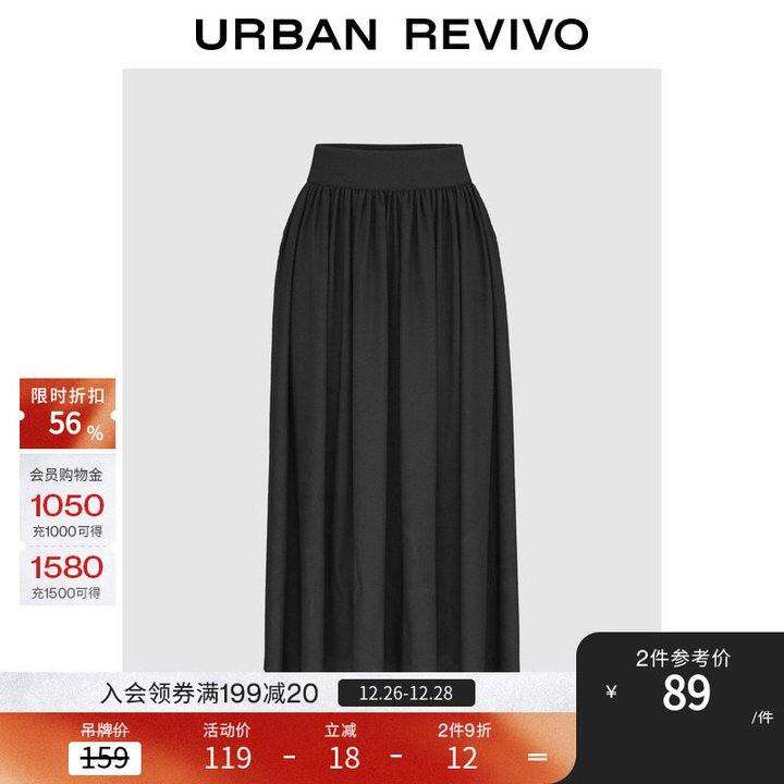 UR2025冬季新款女装简约休闲纯色超宽松高腰A字半裙UWB550004