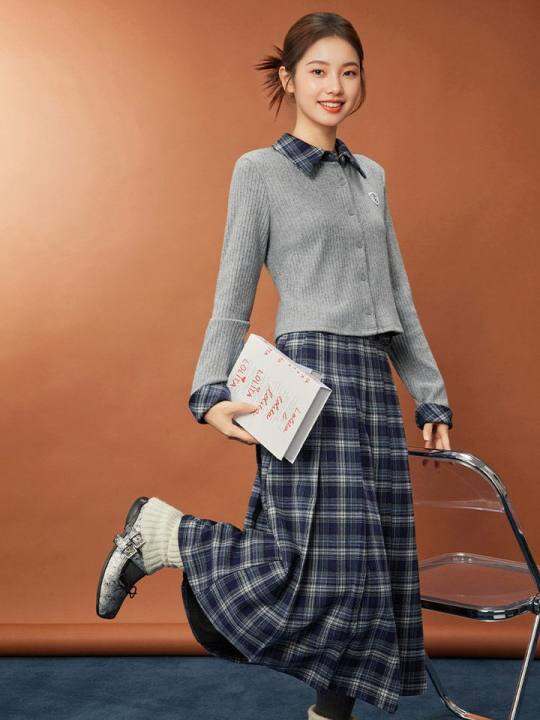 在店里买的这一套,打折款149拿下,裙子是薄毛呢,上衣是稍微有点厚度的针织,这两年还挺喜欢买他家衣服的,版型很适合我的身材,打折的时候性价比很高