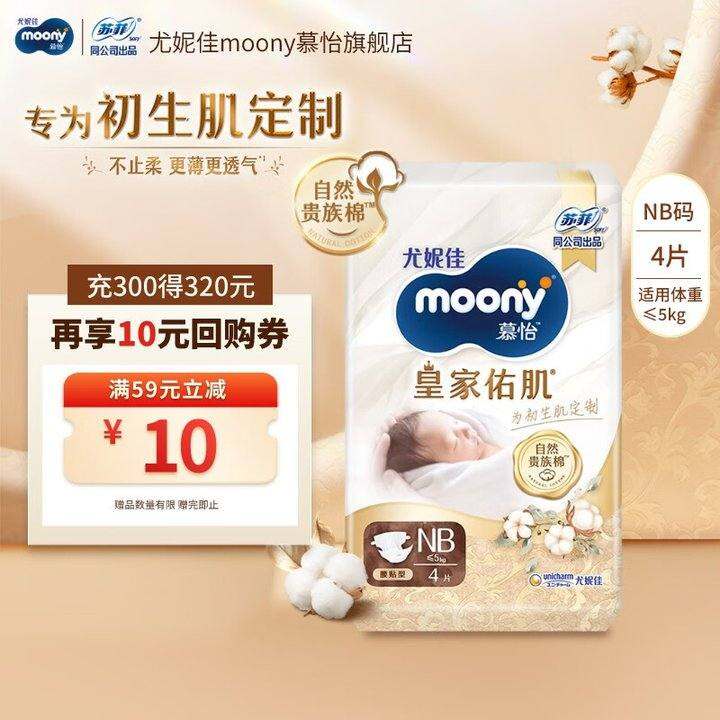 尤妮佳MOONY 尤妮佳慕怡皇家纸尿裤新升级亲肤透气柔软婴儿尿不湿 纸尿裤NB4片试用装(≤5kg)