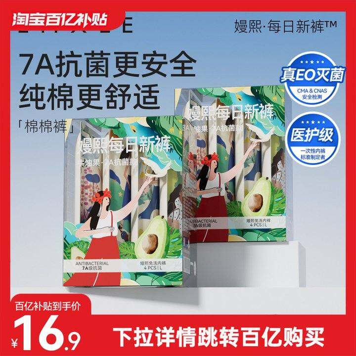 嫚熙7A纯棉一次性内裤女士大码日抛旅行免洗内裤产妇孕妇4条装
