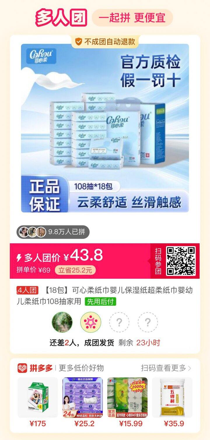 有拼可心柔纸巾的吗?准备开始买婴儿用品了